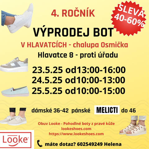 Vážení sousedé, dovolujeme si vás pozvat na výprodej bot www.lookeshoes.com, tentokrát z aktuální kolekce, kterou vidíte na e-shopu se slevou 40-60 %.